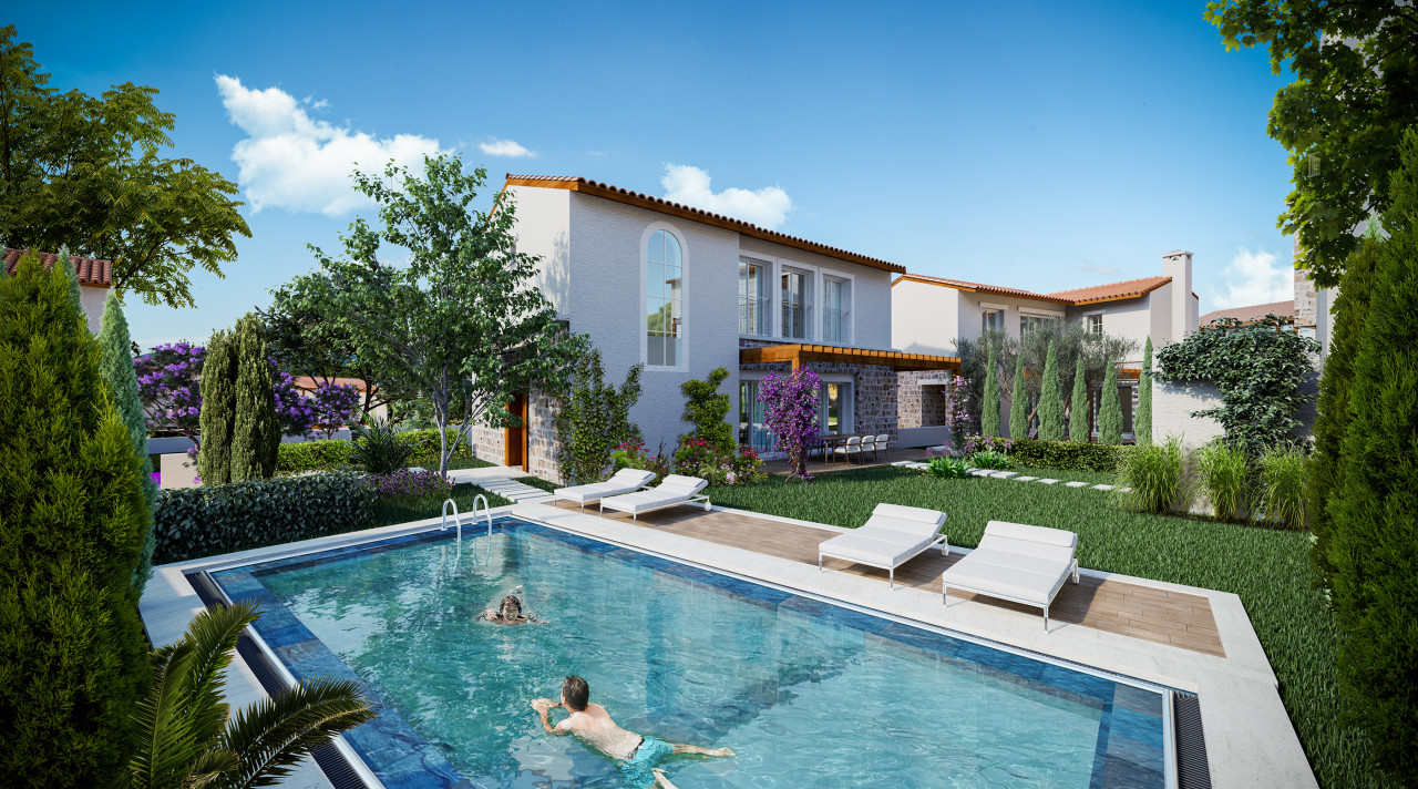 This Project has a modern village concept inspired by the houses of the historical Muğla region. The Villas have large gardens, outbuildings and private swimming pools depending on the Villa Types.